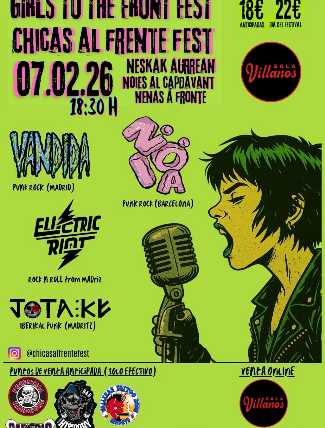 El próximo sábado 7 de febrero estaremos con nuestro stand solidario en la primera edición del #chicasalfrentefest en la sala Sala Villanos de Madrid.